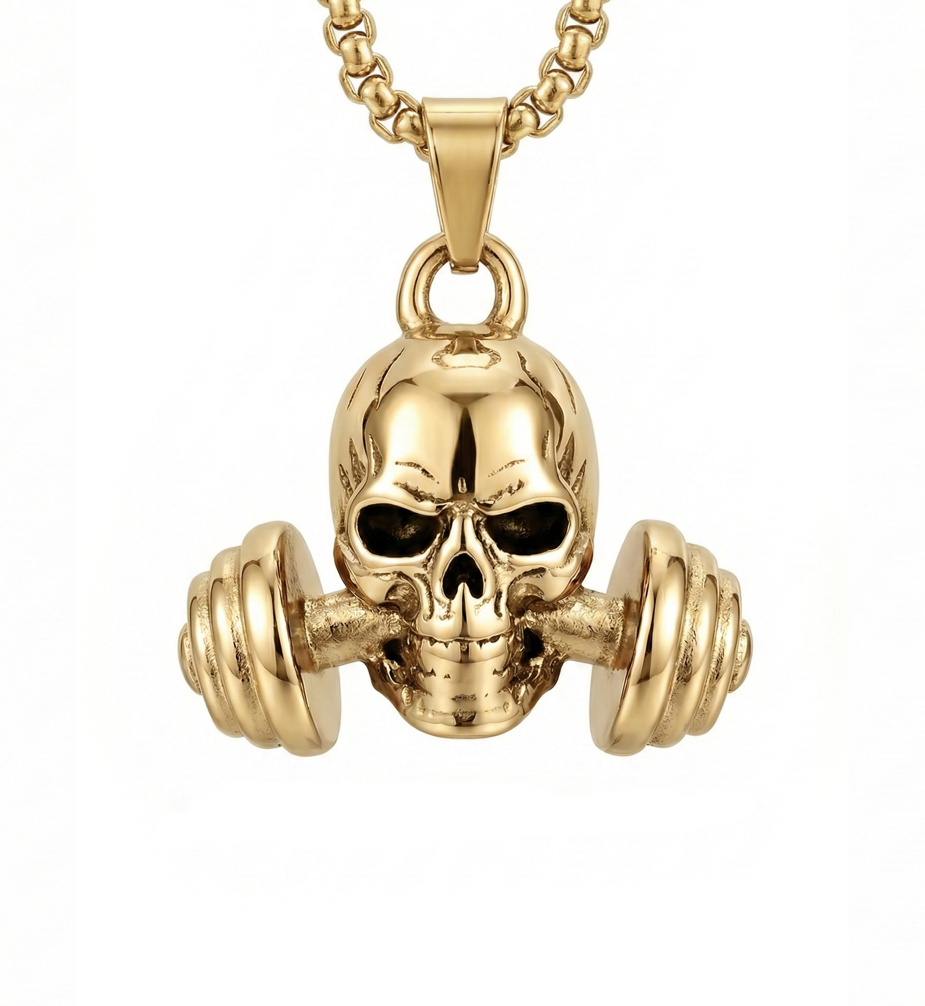 COLAR COM PINGENTE CAVEIRA HALTER BANHADO A OURO